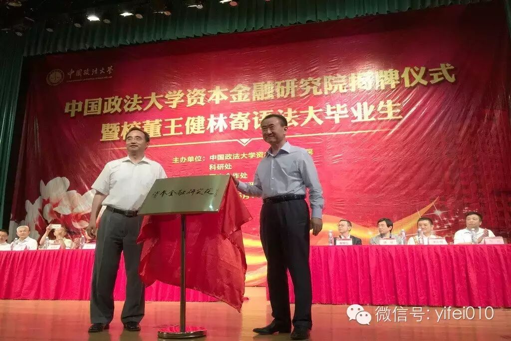 中国政法大学资本金融研究院6.18揭牌,校董王健林出席并寄语法大毕业生“有目标、找方法、能坚持” |